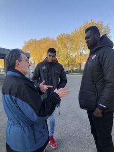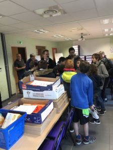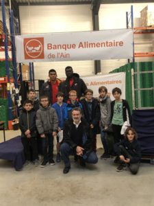 Dès le lendemain, le mercredi 20 novembre à 15h30, c’était au tour de Fréjus Zerbo & Johan Randriamananjara de s’engager, cette fois-ci auprès de la Banque Alimentaire de Bourg-en-Bresse. Cet action solidaire a débuté par un discours du Président de l’Association, Gilles Bollard, ensuite place à la visite des locaux pour terminer avec une collation et un moment de partage très gentiment offert par la BA. En effet, nos joueurs n’étaient pas seuls. Des bénévoles de la BA ainsi qu’une équipe de basket U13 de Ceyzeriat étaient également mobilisés autour de cette cause. Cette opération avait pour but de lancer la promotion de la grande collecte de denrées alimentaires pour l’hiver 2020.