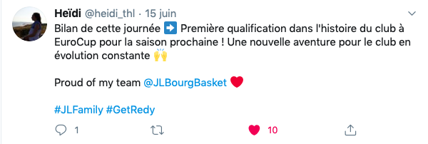 Heureux d’avoir pu écrire l’histoire avec @JLBourgBasket et aider le club à jouer dans sa première compétition européenne en @EuroCup !!! Félicitations et définitivement, l’une des meilleures organisations pour lesquelles j’ai joué !!!! #getredy